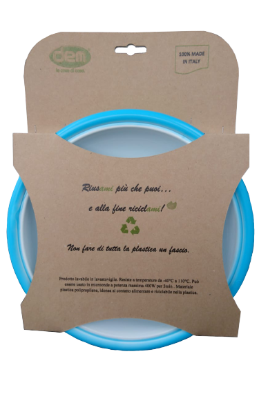 Per alcuni prodotti strategici abbiamo studiato un nuovo packaging derivante da carta riciclata con cui spieghiamo come i nostri prodotti permettono di essere usati più e più volte e sono 100% riciclabili così da farci promotori dell’etica del riciclo e riuso e della riduzione degli sprechi.